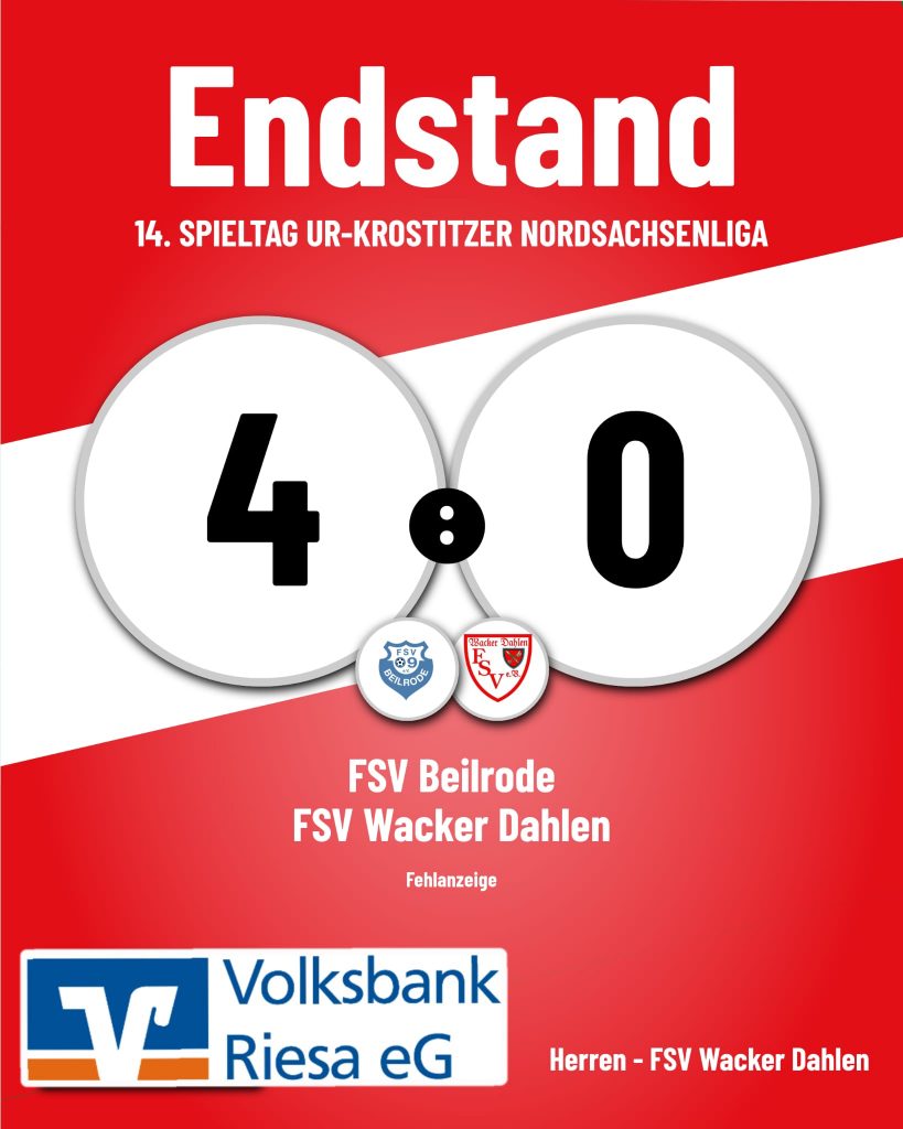 Der FSV Wacker Dahlen blieb gegen den FSV Beilrode I chancenlos und kassierte eine herbe 0:4-Klatsche. Im Vorfeld war eine ausgeglichene Partie erwartet worden, doch der FSV Beilrode I wusste zu überraschen. Im Hinspiel hatten sich beide Mannschaften mit einer 1:1-Punkteteilung begnügen müssen.