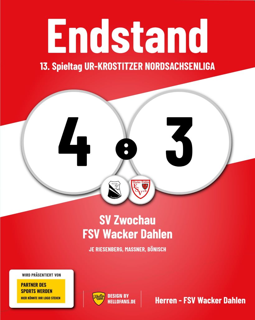 Am Sonntag bekommt es der SV Zwochau mit dem FSV Wacker Dahlen zu tun, einem Kontrahenten, der auf einer Welle des Erfolgs reitet. Der SV Zwochau musste am letzten Spieltag die elfte Niederlage einstecken, will aber auch dieses Mal wieder alles geben, um endlich den ersten Saisonsieg zu feiern. Am letzten Sonntag holte der FSV Wacker Dahlen drei Punkte gegen den SV Traktor Naundorf (3:2).
