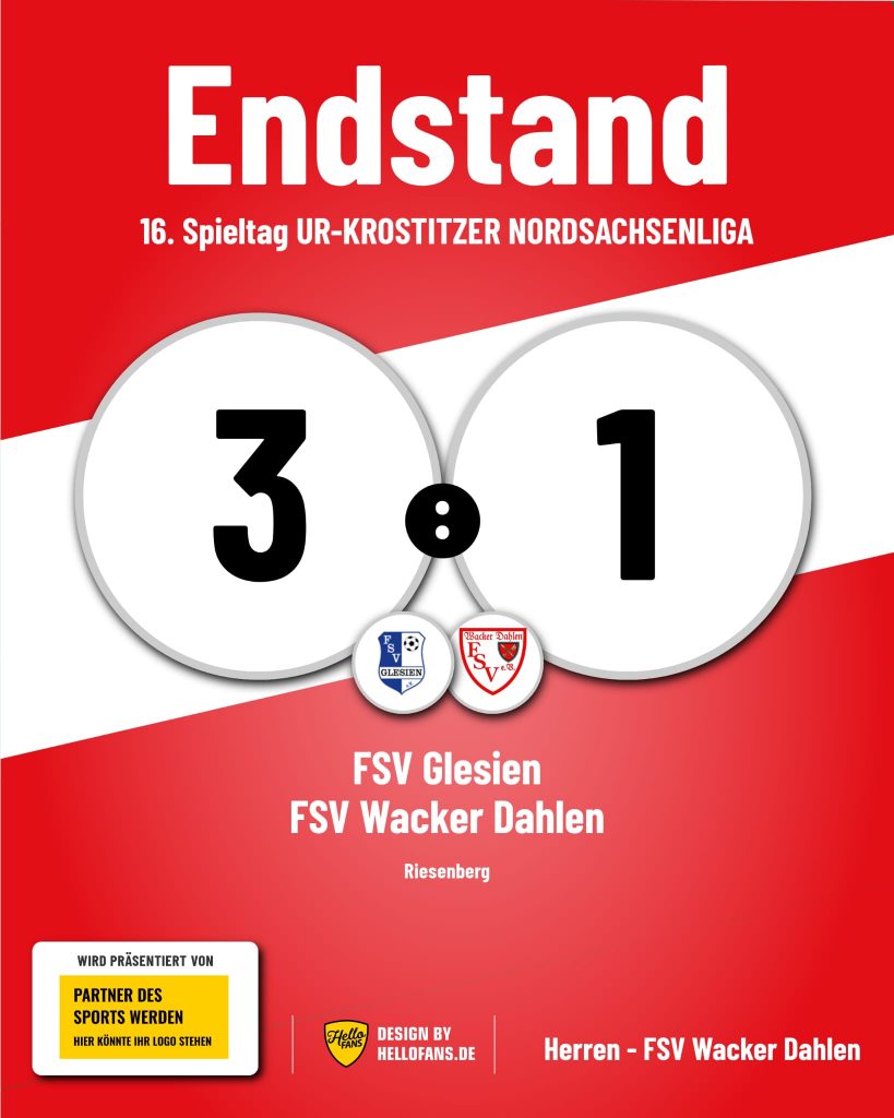 Am 16. Spieltag der Nordsachsenliga empfing der FSV Glesien den FSV Wacker Dahlen. Was am dem Papier für einen klaren Favoriten sprach – Glesien als Tabellenfünfter – entwickelte sich auf dem Platz zu einen intensiven Fight zwischen zwei ebenbürtigen Mannschaften.